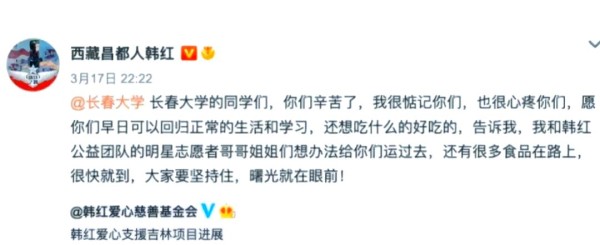 在内地,有一位女星始终热心于慈善事业,她不仅自己积极参与,还积极倡导其他明星共同投身于慈善活动。这位令人敬佩的明星就是韩红,她在此次疫情中更是身先士卒,不断地为抗击疫情筹资捐款。