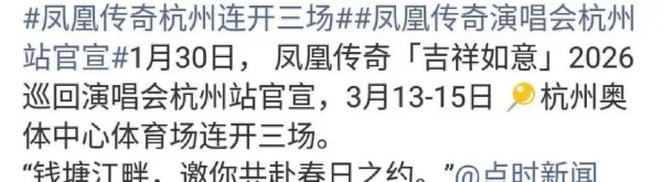 开春之际,音乐不断点燃激情,杭州的演唱会又将带来新高潮,观众能在现场和屏幕前双重享受。凤凰传奇那句“一起见面吧,刚好在春天”,不只是演唱会邀请,更是对歌迷温暖的约定。