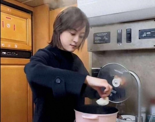 孙俪拍完夜戏收工,已经很晚了,她有点饿,就随便弄点东西吃。