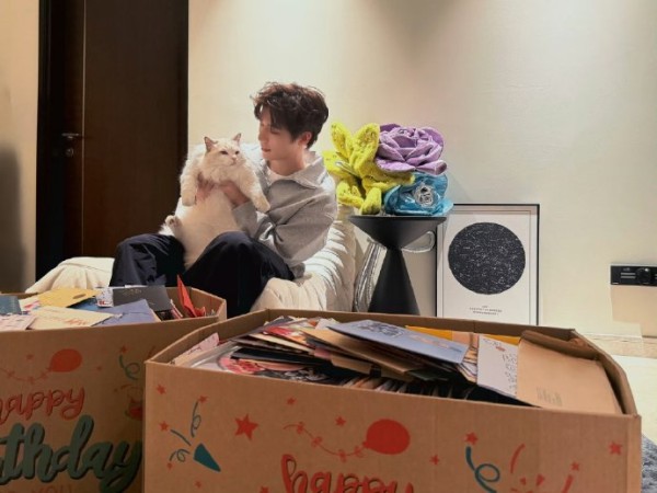 在粉丝寄送的两大箱手写信的致谢场景中,宠物猫作为实体媒介出现在照片与视频中。粉丝通过信封背面细节“认领”信件,而“菜菜”作为画面焦点,既弱化了明星与粉丝的距离感,又以视觉符号强化了群体归属——“菜菜”既是猫,亦是每位粉丝的化身。