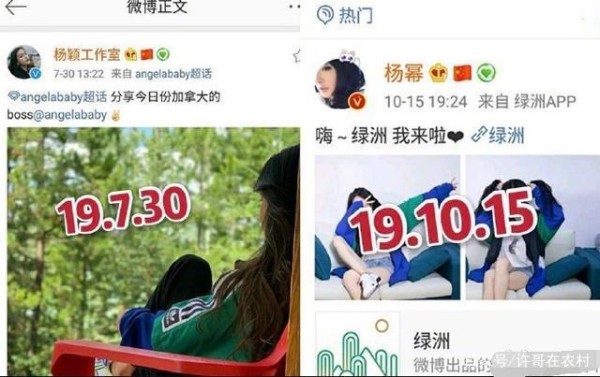 这一套其实杨幂和baby只是撞了一件外套,这件外套是蓝绿配色的,所以比较显眼,而通过照片中的时间,我们可以发现baby穿这件外套时是在7月30号,杨幂穿这件外套的时间是10月15日,相差了几个月,baby的时间要早一点。