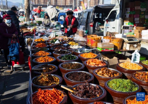 在北京市昌平区沙河大集,商户在售卖酱菜(2月8日摄)。