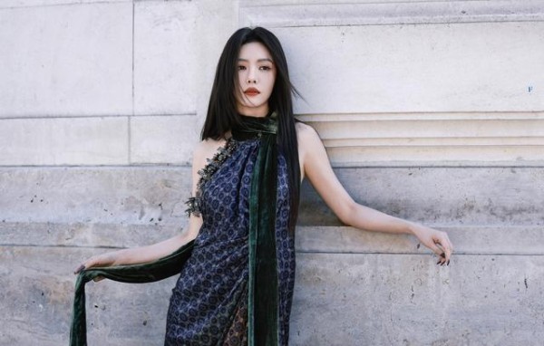 蔡文静巴黎复古丝绒长裙演绎时尚艺术街头大片