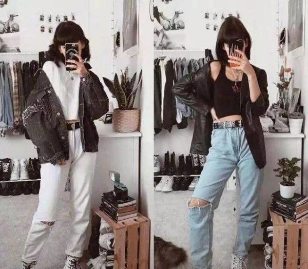 破洞牛仔裤,休闲街头感强。白色宽松短款针织衣,露脐款式,能够很好的露出纤细的腰线,满满的时尚感,搭配一条白色高腰破洞牛仔裤,同色系的搭配显瘦休闲,而外穿一件灰色牛仔裤,休闲酷帅,一双白色马丁靴的搭配,能够很好的修饰腿部线条,显高又酷又美。