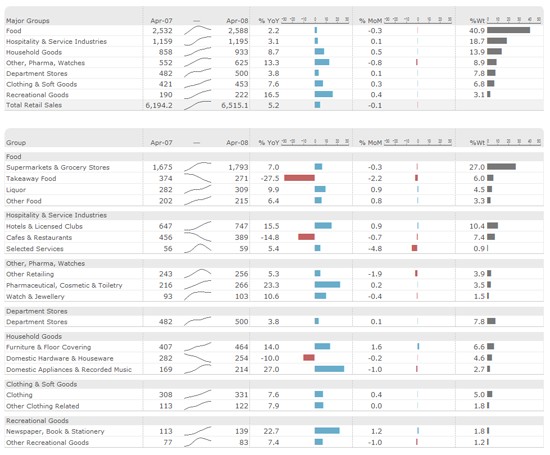 对于处理相对简单的维度的数据,表格的功能是非常强大的。表格可以以最为结构化和组织化的方式显示数据标签和数量,而且结合排序和筛选可以让其功能得到最大程度的发挥。此外,爱德华·塔夫特(Edward Tufte)建议在表格中添加一些小的数据图,例如在每一行加一个柱状图,或者画一个小的线形图(后来也被称为迷你图)。但是,正如在简介中所提到的,表格无疑有其局限性。表格可以轻松帮你找到一维数据的异常值,比如排名前10的数据;但当要同时比较多维数据时(例如每个国家的人口随时间的变化),用表格就力不从心了。