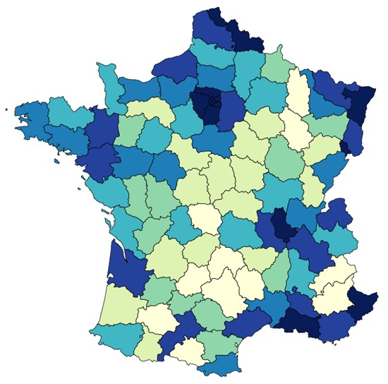 事实上,我们处理的大多数据,都以某种方式与现实大众有所联系。地图的作用就是重新建立数据与我们的物理世界之间的联系。想象一个犯罪事件的地理分布数据集,这其中你最想知道的就是犯罪发生的_地点_,而数据地图可以揭示数据中地理位置的关系,例如从北部到南部,或者从城市到农村地区的趋势。