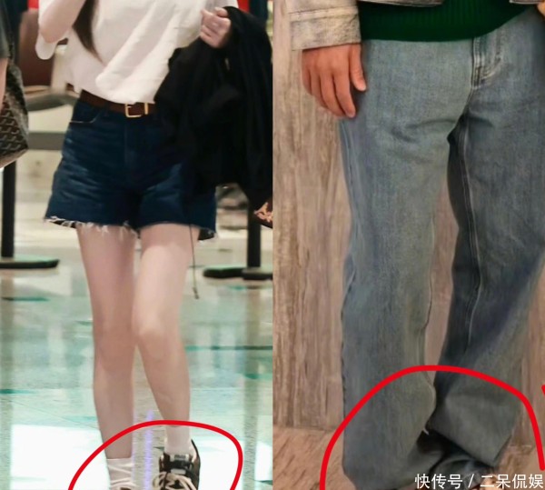 两人的情侣款也是超多,想秀恩爱的心藏都藏不住。 同款鞋子。