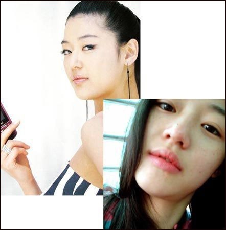全智贤:卸妆后的全智贤脸上有些色斑,略显碍眼,眼睛也是肿肿的,不过依旧是个美人坯子!