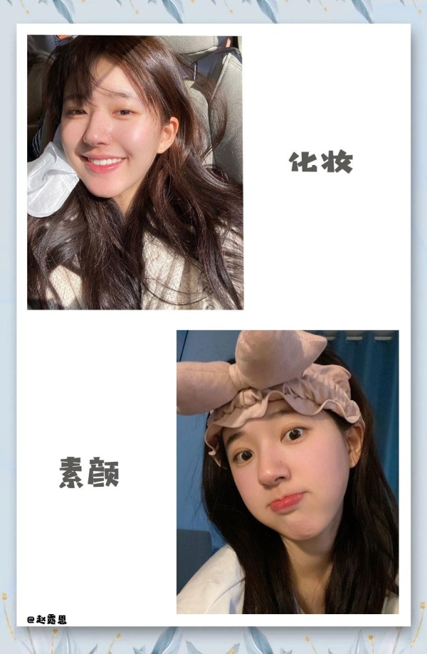 无论是在化妆还是素颜状态下,赵露思都展现出了令人赞叹的美丽。 尽管在眼妆上稍有差异,但她的整体妆容和发型总是令人惊艳。赵露思那鼓鼓的小脸蛋,加上她那可爱的“人间小奶包”气质,真是让人心动不已。