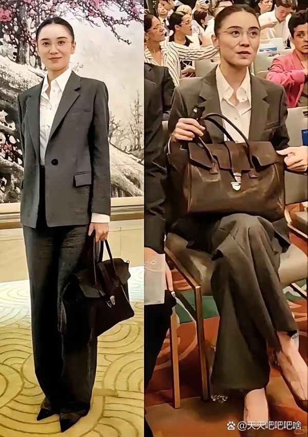 再搭配她当天身上穿上灰色西装,发型利落,妆容淡雅知性,如果不说她是个演员,我还以为她是个女企业家