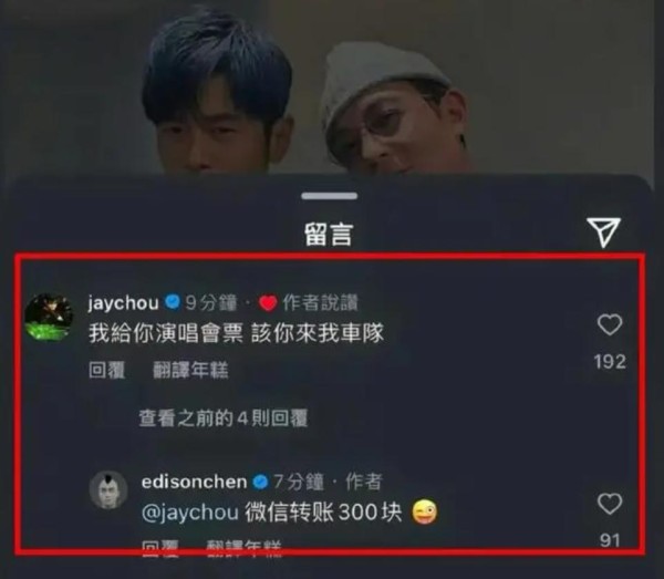 39岁的陈冠希罕见给周杰伦留言,周杰伦回应,说明他们关系很铁