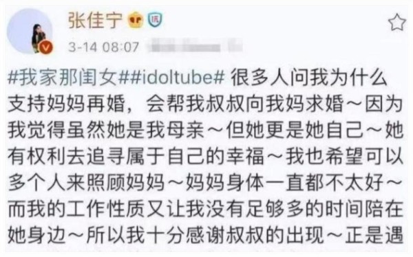 张晓龙是张佳宁亲舅舅,张佳宁支持妈妈再婚