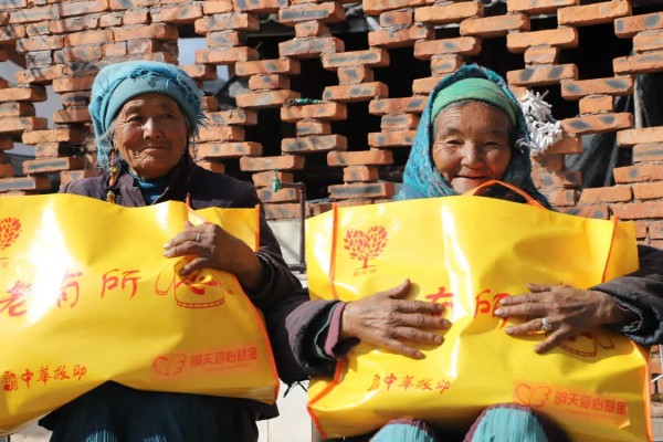 2018-2019年,黄晓明连续两年共为山东、重庆、四川、北京、天津、云南、陕西等地区的1588位空巢老人每人免费发放一份温暖包(内含:羽绒服1件,羊毛护腰1个,羊毛护膝1对,羊毛袜子2双),帮助老人们温暖过年。