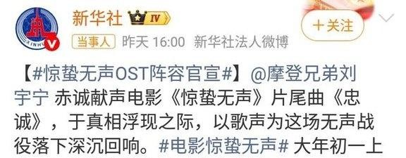 周深微博之夜献唱!惊蛰无声OST阵容官宣,周深刘宇宁汪苏泷太强