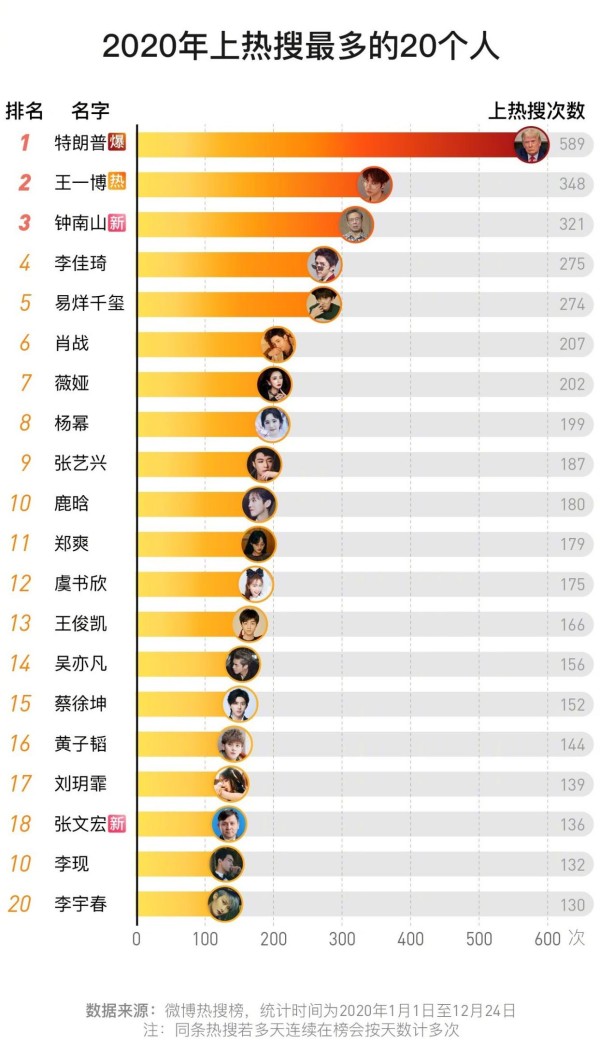 近日,一则统计数据在网络上流传开了,之所以会引起热议,还是源于它所统计的东西比较热门——主题为“谁是热搜常客”——对于这个问题,实在是太过博人眼球了,因为它所统计的便是哪些人常常登上热搜?是哪位明星?又是哪位艺人?他登上热搜的次数又是多少?如此等等,都是广大网友比较关注的问题。