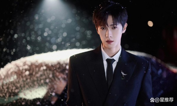 李昀锐经典黑西装点缀Tiffany绿碧玺“石上鸟”胸针,雪夜撑伞图营造“现偶剧总裁”氛围。