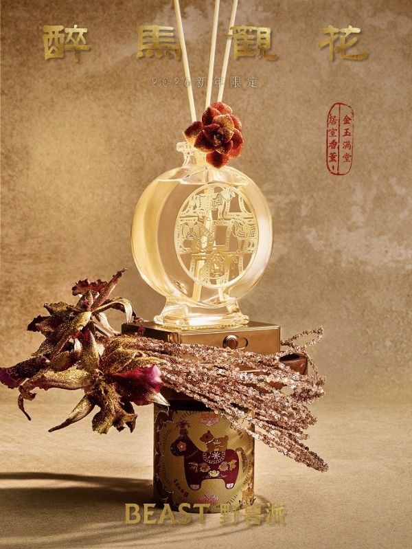 愿你在奔赴新岁的途中,多一分从容,赏一路花开。围绕这一主题,野兽同步推出2026马年限定系列「醉马观花」,将香氛、器物与手作年礼相融,使美好的新年期盼,化为可观赏、可使用、可赠送的日常陪伴。
