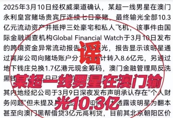 真相大白!造谣“顶流男星澳门赌博输10亿”的网民被拘,身份细节曝光