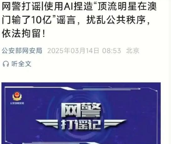 顶流明星在澳门输了10亿?男子使用AI捏造谣言被行拘