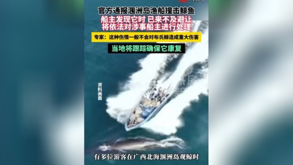 官方通报涠洲岛网红鲸鱼被渔船撞击,伤痕长约半米,不会对鲸鱼造成重伤