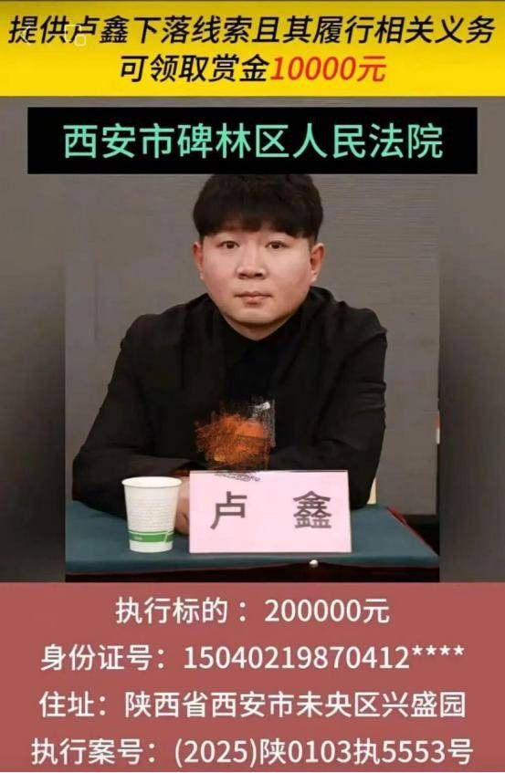 这段13年的兄弟情谊,最终以西安法院的悬赏而宣告终结——昔日搭档张玉浩申请强制执行,公开悬赏1万元寻找卢鑫的下落。