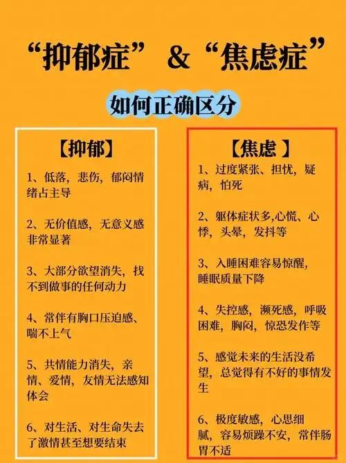 尽管焦虑症和抑郁症经常共病,但它们是两种不同的心理疾病,核心症状有明显区别。