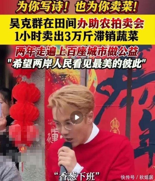 2025年2月4日,中央级媒体专门报道了他助农的事迹。在贵州贵阳的谷定村,他亲手策划并主持了一场别开生面的田埂拍卖会。他邀请了四十多家本地餐饮企业和连锁超市的采购负责人,亲自上阵推销新鲜蔬菜。他用刚学会的方言,热情地介绍豌豆尖的口感差异,现场亲自掐茎、试味,短短一个小时,就帮助当地农民售出了近三万斤蔬菜,彻底解决了滞销的困境。更为重要的是,吴克群促成了当地超市与农民的长期合作协议,为乡村产业带来了可持续发展的动力。为此,他全程亲自参与,事无巨细,堪称身先士卒。