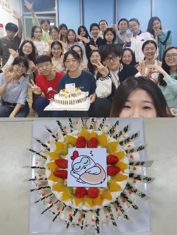 刘钊均与白鸽青协成员们分享蛋糕