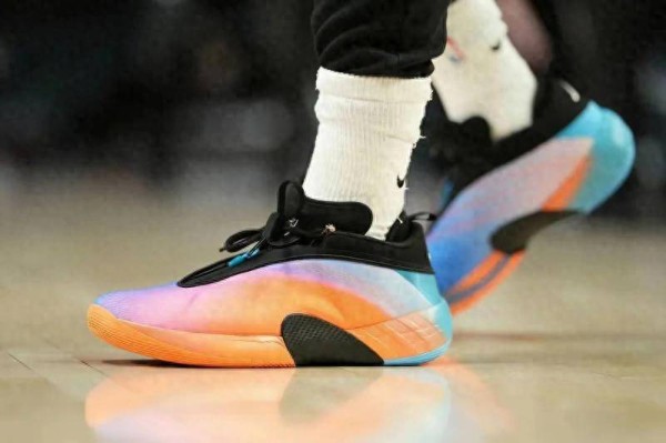 值得一提的是,米切尔在比赛中更换了自己的战靴。他先是脚穿全明星配色的adidas DON issue.7踏上赛场,这款战靴的全明星配色设计十分亮眼,以独特的色彩搭配和精美的图案展现出了全明星赛的独特魅力,不仅在外观上吸引了众多球迷的目光,其专业的性能也为米切尔在球场上的奔跑、跳跃和变向提供了有力的支撑。而在比赛的某个阶段,米切尔又换上了虎纹配色的adidas DON issue.6 PE。虎纹配色向来以其狂野、霸气的风格著称,这种独特的设计不仅彰显了米切尔在球场上的王者之气,也体现了品牌对于球员个性化需求的重视。
