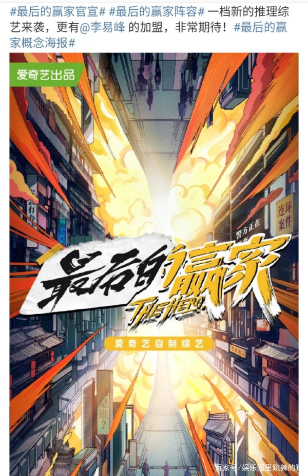 观众能想到这些顾虑,桃自然也能想到,所以几乎同时,又一款自制探案综艺的消息传出,从阵容来看,这才是对标《明侦》的节目。这档综艺叫做《最后的赢家》,从推介会来看,这是一档推理综艺,通过剧本和线索让嘉宾全程互动参与,最终留下胜利者。