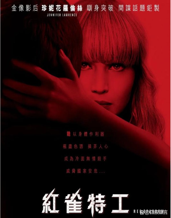 詹妮弗·劳伦斯主演,她在片中饰演一名俄罗斯间谍多米尼卡。多米尼卡本是前途光明的芭蕾舞者,却因意外受伤断送舞蹈生涯,被迫加入神秘的“麻雀学校”接受残酷训练,化身用身体作为武器的致命特工“红雀”。影片中有多场大尺度的审讯戏和情感戏,詹妮弗·劳伦斯为了精准呈现角色的挣扎与坚韧,不仅在表演上大胆突破,拍摄过程中更是付出诸多艰辛,如脚背绷到骨裂等。她将角色身处绝境的无奈、在权力漩涡中的周旋以及内心深处的良知挣扎展现得十分到位,让“红雀”这一形象既有致命的诱惑,令人心疼的脆弱。