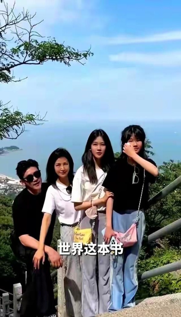陆毅鲍蕾全家四口旅行被拍,两个女儿身材引人注目。