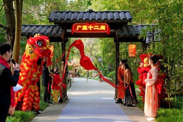 唐风仕女衣袂轻扬,在古乐声中缓缓登场;水袖翻飞,与楼阁飞檐相映成趣。舞狮腾跃于阶前,鼓点由远及近,热闹在一声声节奏中被点燃,司仪开场致辞,倒计时声中红绸徐徐揭下,“广厦十二间”牌匾映入眼帘,新春气象由此铺展。