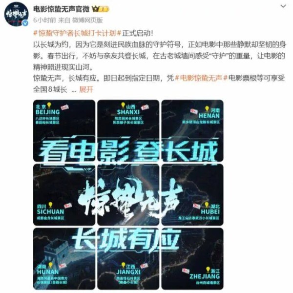 国家安全题材毕竟是一个新的标签,如何变得形象可感需要精细化运营。能看到片方在映前联合国家安全部、新华社等释出不少案例科普,开拓了不少话题切口,也在和全国各地文旅的联动合作中,重点展开了与各地长城景区的联动。因为国家安全经常被比作“无形的长城”,以“有形”喻“无形”,就让国家安全变成了具象的文化符号,让“国安题材”进一步落地。