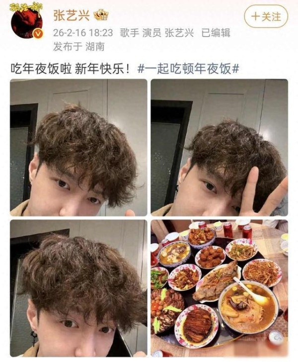 张艺兴除夕素颜发年夜饭照,没修图没摆拍,网友说这饭吃得真踏实