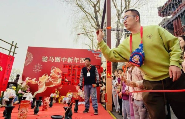 ▲游客参与投壶祈福游戏。尽显新春佳节的浓郁年味。