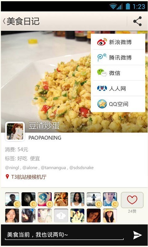 分享就是一种推荐。如果别人喜欢你的分享,则可以根据你提供的地点、价位等信息,亲自到店享用。这就是美食日记的餐厅发现功能。和大而全的餐厅发现应用(比如大众点评、食神遥遥)不同,美食日记的餐厅推荐源自用户喜爱的一道菜,餐厅信息也基本上全是用户生产的内容。这样就使得餐厅下面的介绍不是生硬的,菜品图片不是PS出来的,很有“人味”的餐厅介绍。