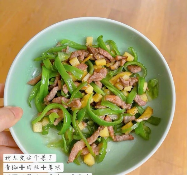 这其实是孙俪晒的和邓超过节吃的食物,除了两个孩子给邓超写了温馨的卡片外,还有一份最近经常吃的炒菜,就是这款青椒炒肉丝了,和我们平常见的有所不同,这里还额外加入了些姜块,看着还是蛮不错的,毕竟这夏天很适合吃姜的,当然这个做法也不难,只需把猪里脊切条状,姜切块,青椒切条,锅烧热,倒入少许的食用油,下入肉丝翻炒至变色,然后盛出备用,接着倒入姜块和青椒一起翻炒熟了,再倒入肉丝一起炒匀了,最后加入酱油、胡椒粉、鸡粉调味就可以端上桌了。