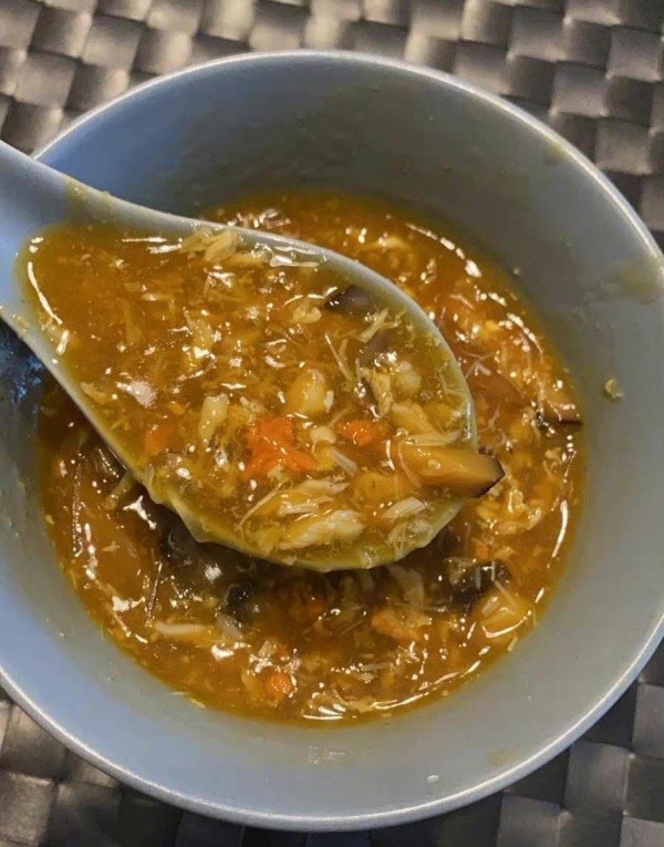 酸辣汤,这道汤里面是由菌菇、豆腐等食材组成的,喝起来开胃又过瘾呀。做法把喜欢的食材洗净切丁,然后锅中加入适量的冷水煮开,下入食材煮熟,然后倒入酱油、水淀粉、胡椒粉、陈醋、芝麻油调味最后倒入蛋液快速的搅拌下即可完成了。