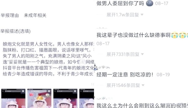 例如,一些网友表达出强烈的不满,质问道:“难道做男人就那么委屈你吗?”还有人自我反思:“我这辈子可没做过什么缺德事,怎么就遇到了这种事?”更有甚者,有人讽刺道:“经期可要注意身体,别贪凉。”这段视频在社交媒体上引发了广泛关注,甚至有人直接向平台举报。他们认为,这种所谓的“娘炮文化”不仅矫揉造作,还丧失了男人的阳刚之气,充满了阴柔之风。通过网络平台的传播,这种文化可能会误导青少年,给他们带来错误的价值观导向,从而不利于他们的健康成长。