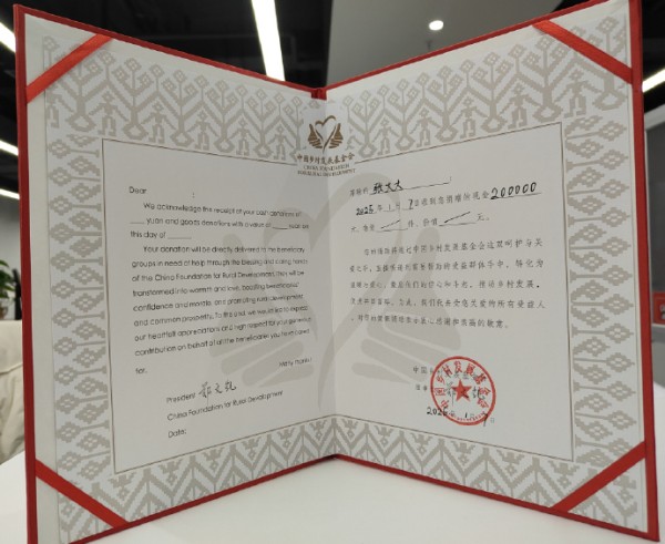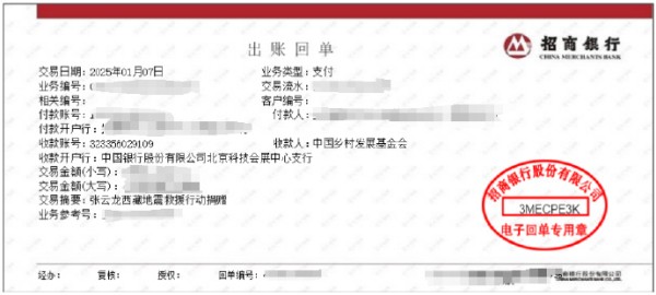 感谢张云龙第一时间积极响应西藏日喀则地震救援行动,通过中国乡村发展基金会将温暖与希望传递给灾区群众,携手共渡难关。