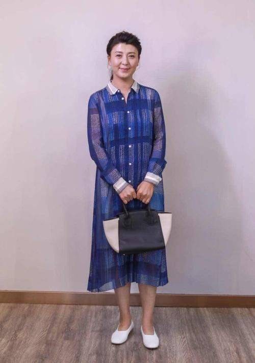 同样这个时候的头发是比较短,戴着一个发箍,而且这个时候脸上也是完全没有化妆,可以看到下面的眼袋是比较的突出,而且脸上的法令纹也是比较的明显,穿着一条白色的裙子,这个时候打扮能看起来比较的少女