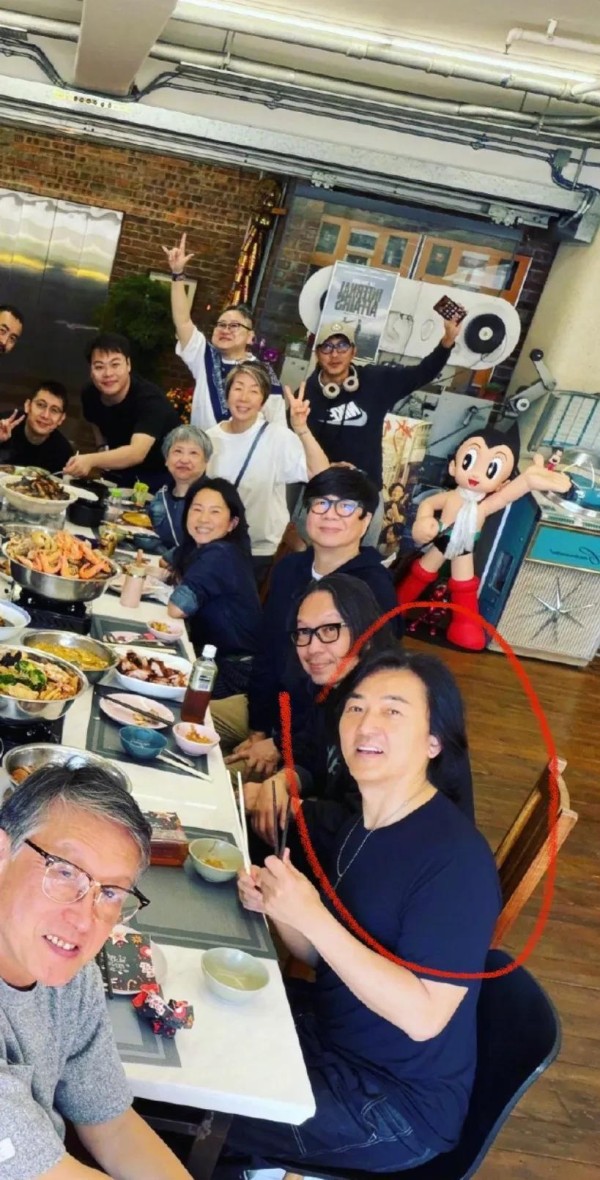 最引发讨论的,还是另一张大合照里的郑伊健夫妇。环境像是个不错的餐厅或私人会所,人很多。舒淇戴着之前照片里的帽子,调皮比耶。郑伊健坐在角落,脸圆了一圈,穿件灰蓝夹克,肚子明显鼓出来了。他老婆蒙嘉慧坐在桌子对面,低着头看手机,穿得很朴素,耳环都没戴。两人没有刻意靠近摆造型,就是吃饭时随便被拍进去的状态。