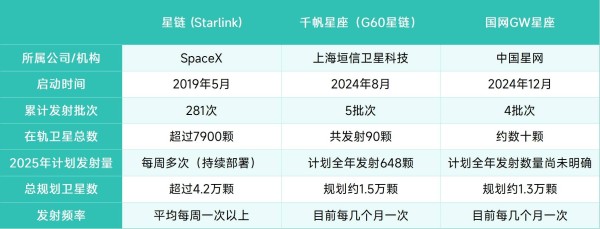 自2019年首批星链卫星发射以来,SpaceX已部署超过7900颗在轨卫星,构建起全球最大规模的低轨互联网星座。而我国双子星之一“千帆星座”已累计发射5批次共90颗卫星,计划2025年共发射648颗卫星,另一家国网GW星座则累计完成4批次卫星发射,与星链相比仍有不小差距。