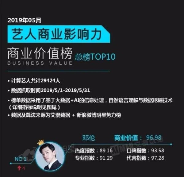 今天无聊就来可以磕一磕娱乐圈的八卦吧,现在许多人都是喜欢追星的,对于自己的爱豆也是赞不绝口,作为明星。最重要的就是商业价值了,正好五月份最具有商业影响力的明星排行榜出来了,今天就看一下自己的爱豆到底有没有商业价值吧,商业价值对一个明星来说是非常重要的。