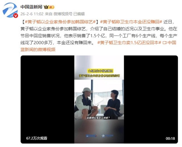 黄子韬以企业家身份登韩国综艺炸出大瓜!不仅大方官宣已婚,更直白晒卫生巾事业账本:销售额冲到1.5亿,可6条生产线每条砸2000多万,重资产砸下去,本金至今没回来,反差感直接拉满全网热议。