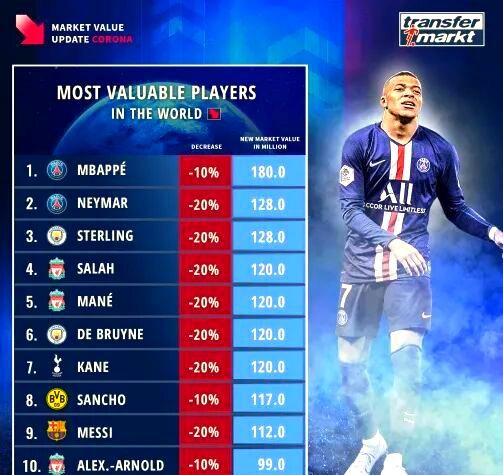 经过统计,全球球员身价流失总额达到了惊人的92.2亿欧元。在身价排行中,姆巴佩以1.8亿欧元位列榜首,但相较于2018年,其身价已有所下调。斯特林和内马尔的身价也分别从1.6亿欧元和1.8亿欧元降至1.28亿欧元。值得注意的是,除了姆巴佩,身价排行前十的其他球员身价均较两年前有所下滑。这一现象深刻反映了新冠肺炎疫情对转会市场造成的巨大冲击。