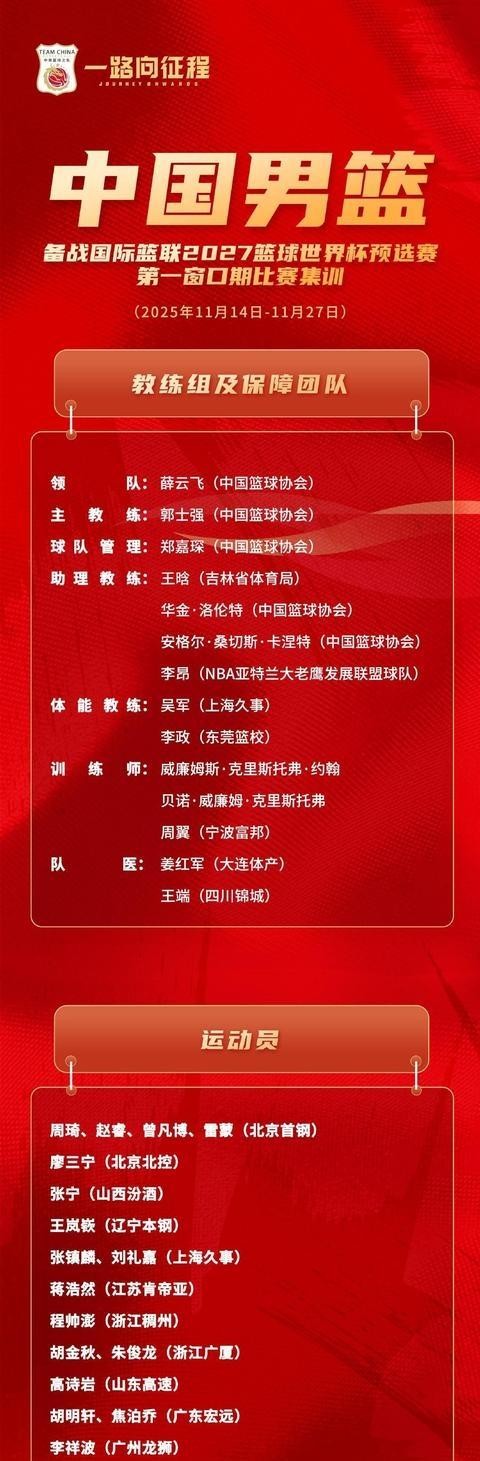 朋友圈炸开了锅——中国男篮最新大名单一公布,杨瀚森、崔永熙、王俊杰全线落选。