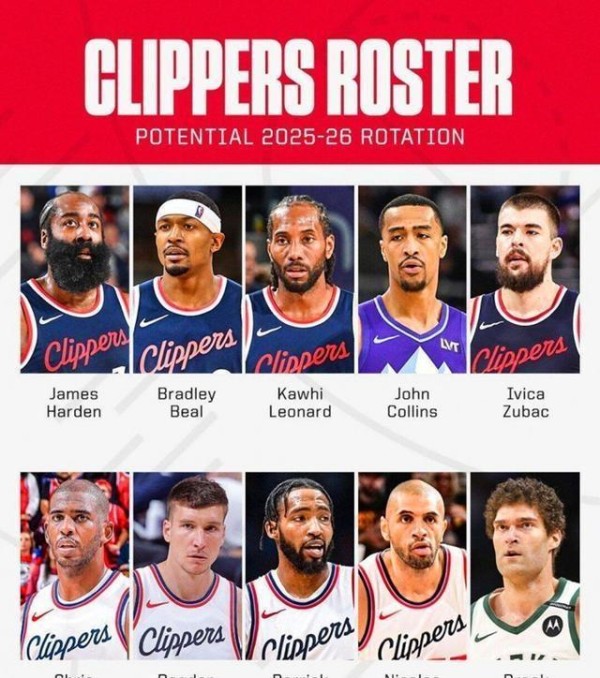 你知道,这“豪华阵容”真是“盖过天了”,比尔和科林斯关于性填补了快船的两个“短板”——第二持球点和首发4号位