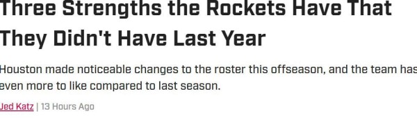 但外界对于火箭队新赛季的表现依旧持乐观态度,美媒《SI》更是认为相比于上个赛季,目前这支全新的火箭队在3个方面迎来了长足进步。